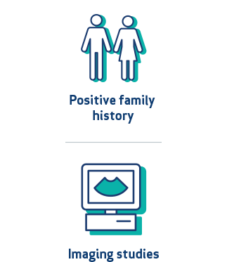 • Multiple factors should be considered, including the age of the patient, presence of associated manifestations (ie, liver cysts), bilaterally enlarged kidneys, and >10 cysts in each kidney16