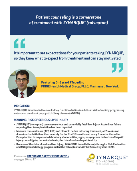 - Because of the risks of serious liver injury, JYNARQUE is available only through a Risk Evaluation and Mitigation Strategy program called the Tolvaptan for ADPKD Shared System REMS